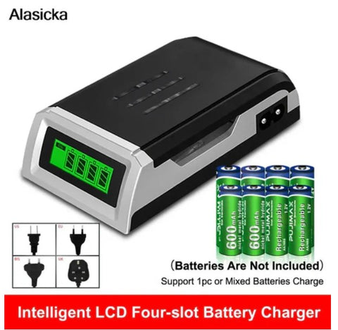 Chargeur Universel de Piles à 4 emplacements avec Ecrans LCD - Livraison Offerte